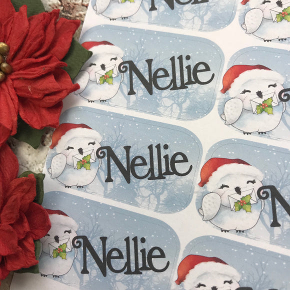 Personalised kids / adults Christmas Present Labels. (47 Owl)