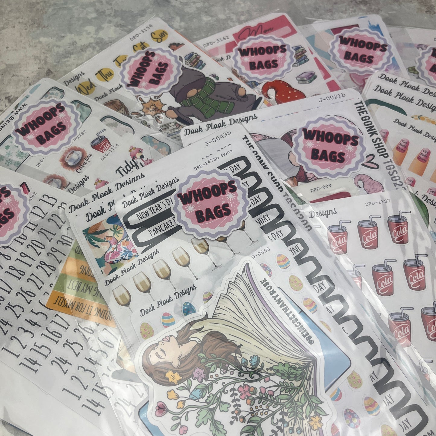 Whoops bags are great value They include the equivalent to 5 of our large sheets. This could be any any variation of sheets available from our store. i.e 5 large , 4 large and 2 small, 10 small etc.