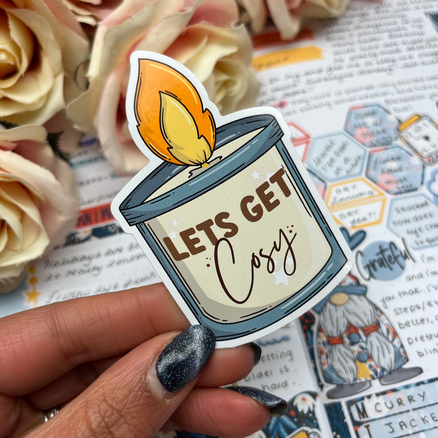 (0125) Let’s get cosy candle- vinyl sticker
