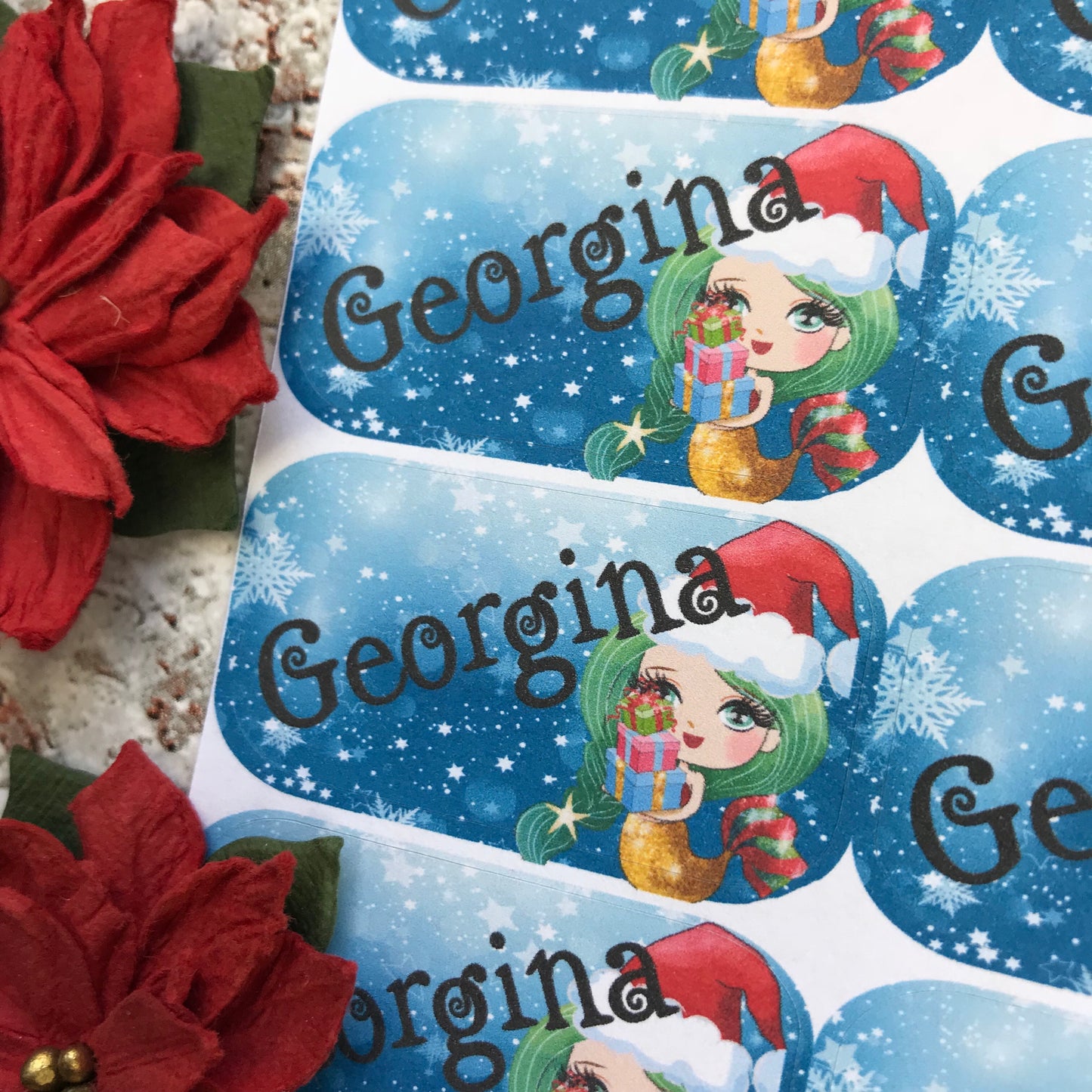 Personalised kids / adults Christmas Present Labels. (37 green mermaid)